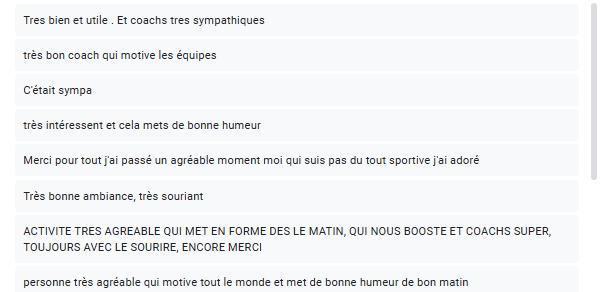 • Retours qualitatifs anonymes